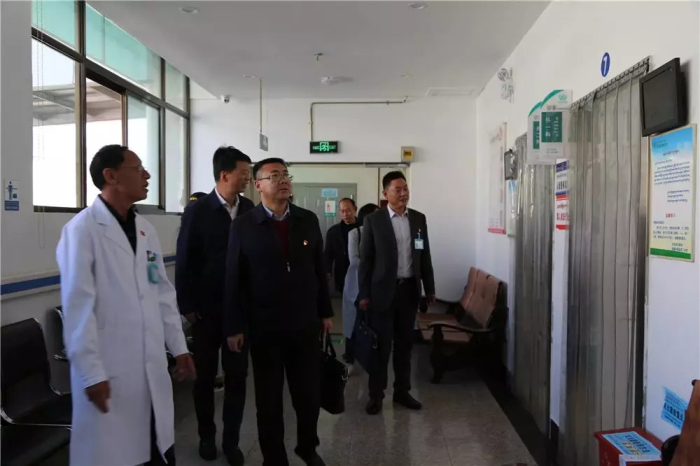 宋留柱書記一行在王斌等各位院領導的陪同下參觀了阜康醫(yī)院放射科、門急診科、標準化病房、院史館、黨員活動室等。