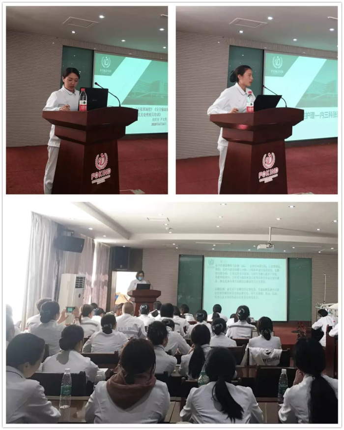 6月19日下午,在院長助理、護(hù)理部主任李麗的指導(dǎo)下,我部組織了阜康醫(yī)院共62名護(hù)理人員在阜康婦產(chǎn)兒童醫(yī)院四樓會(huì)議室開展了以“口腔護(hù)理”、“血糖監(jiān)測(cè)”、“查對(duì)制度、交接班制度、安全輸血制度、護(hù)理糾紛防范及處理”的相關(guān)培訓(xùn)。內(nèi)三科護(hù)士長張穎結(jié)合科室遇到的口腔護(hù)理操作,針對(duì)口腔護(hù)理用物準(zhǔn)備、口腔護(hù)理的適應(yīng)癥、常用溶液的作用、口腔護(hù)理的操作流程等方面進(jìn)行了講解;外二科護(hù)士長陳群就血糖監(jiān)測(cè)結(jié)合臨床經(jīng)驗(yàn)針對(duì)血糖監(jiān)測(cè)的目的,操作流程及對(duì)糖尿病患者的健康宣教進(jìn)行講解;治療室護(hù)士長尹文雋在講解制度中再三強(qiáng)調(diào)我們護(hù)理操作中要時(shí)刻銘記“患者需求至上”的核心價(jià)值觀,做到患者安全、護(hù)理安全,全心全力為患者服務(wù)。